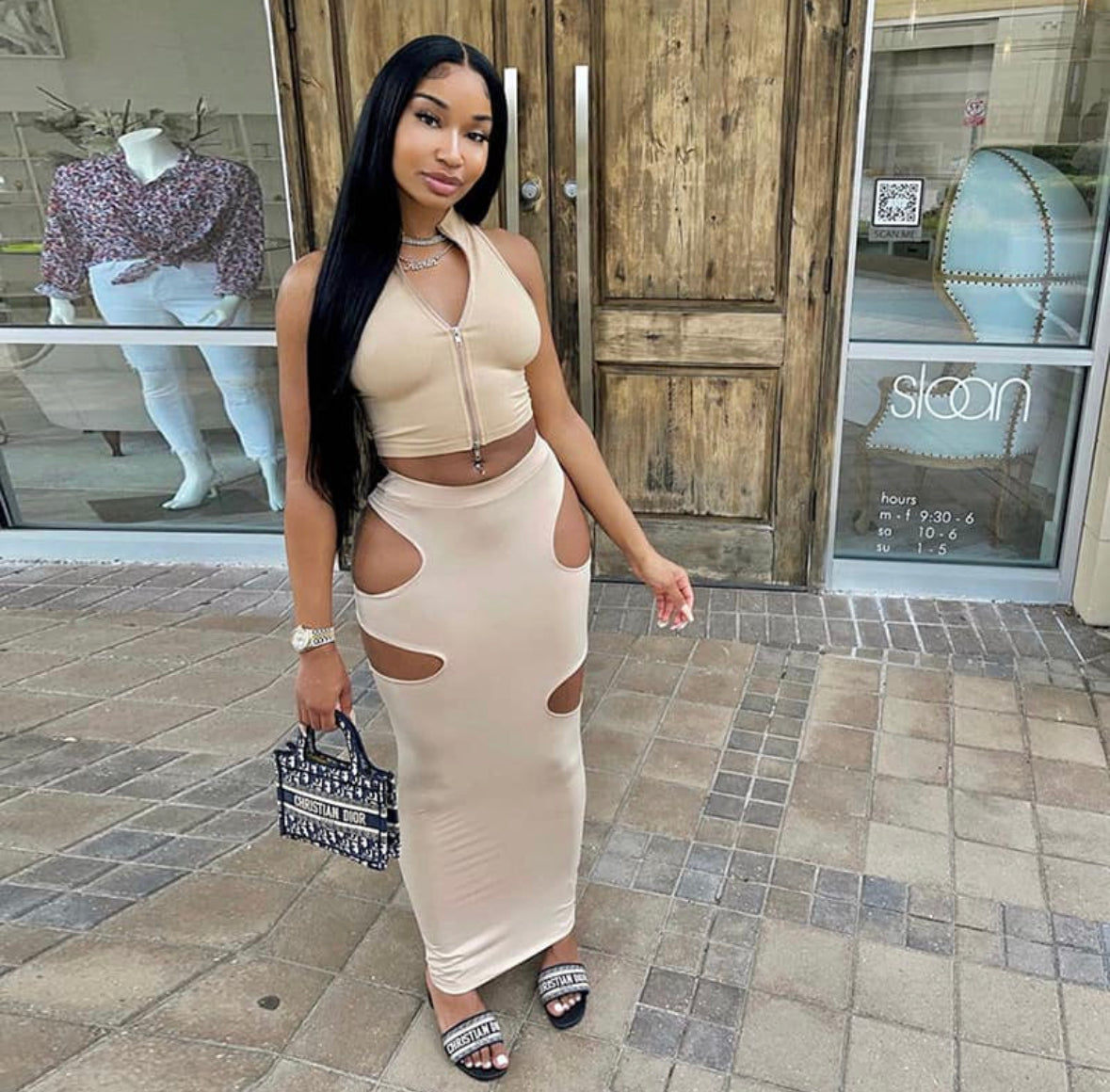 Take control and make a bold statement in the "Don't Play With Me Set," a powerful two-piece designed for ultimate confidence and style. This show-stopping set combines a daring crop top with matching high-waisted shorts, both featuring a unique chain-link design.