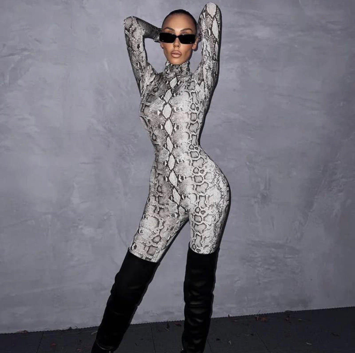 Embrace a fierce and fashionable look with this snake print jumpsuit. Made from a stretchy, comfortable material, this jumpsuit features a striking all-over python print that creates a sleek and stylish silhouette. The mock neckline and long sleeves give it a chic, streamlined finish, while the bodycon fit molds to your figure for a confident and powerful look. Whether you're heading out for a night on the town or looking for a statement piece for your wardrobe, this jumpsuit is a must-have.