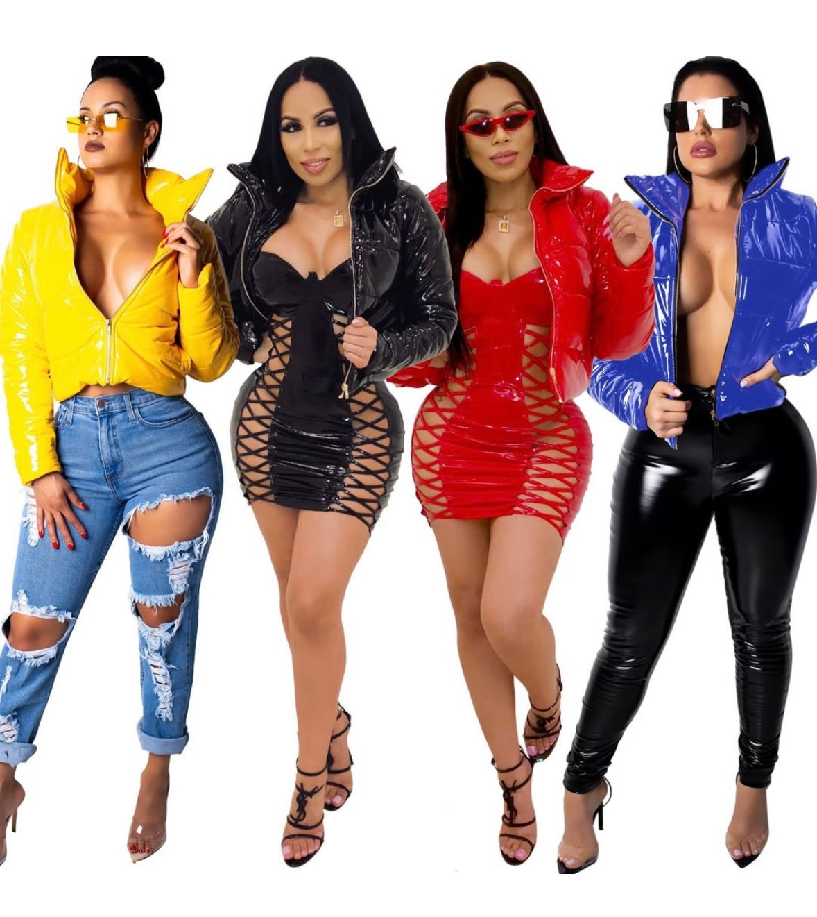 Introducing the "Waterproof Bubble Jacket," your new go-to for making a bold statement, no matter the weather. This cropped puffer jacket takes the classic winter staple and elevates it with a show-stopping, waterproof patent finish.